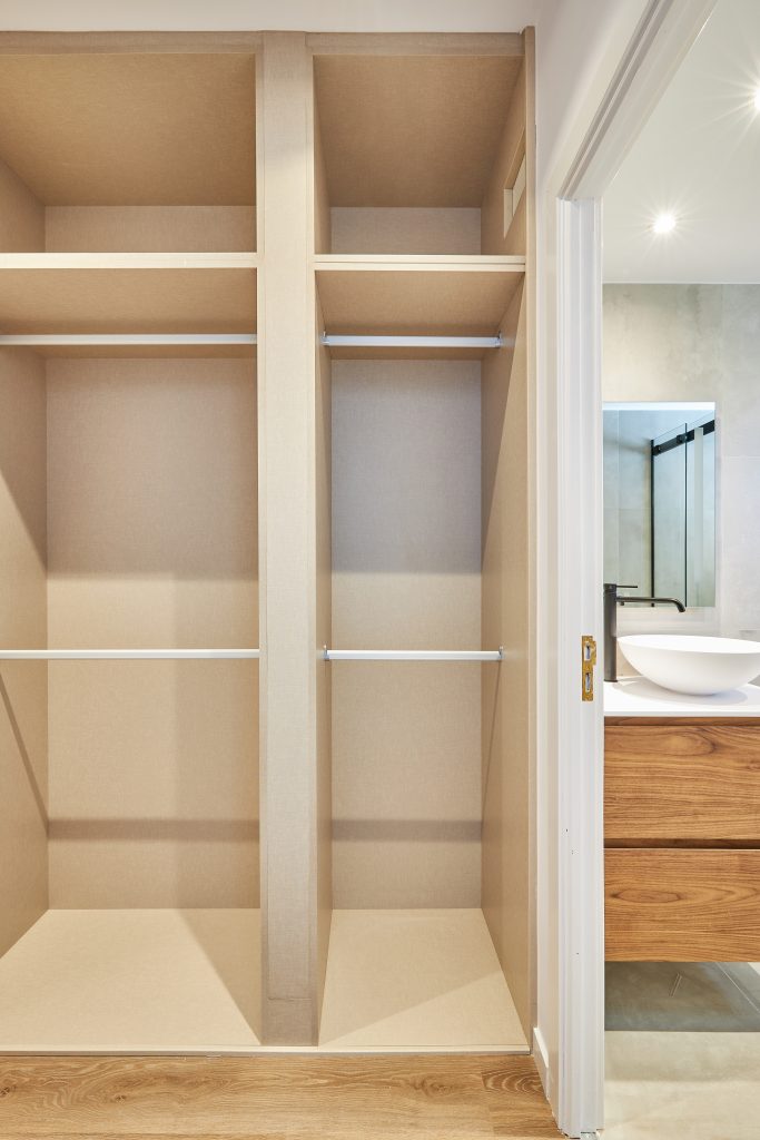 El dormitorio principal con vestidor y baño en suite lo logré trasladando este dormitorio a la salita de la que te hablaba al principio y cerrando el acceso a la cocina que también estaba en esta parte de la casa.