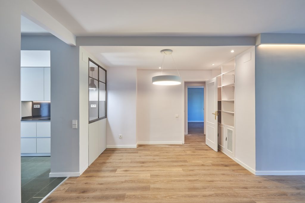 Lo primero fue derribar el hall para que entrara más luz y anular el acceso a la cocina. Así unía el hall, el salón y el comedor, creando un único espacio diáfano y muy luminoso.