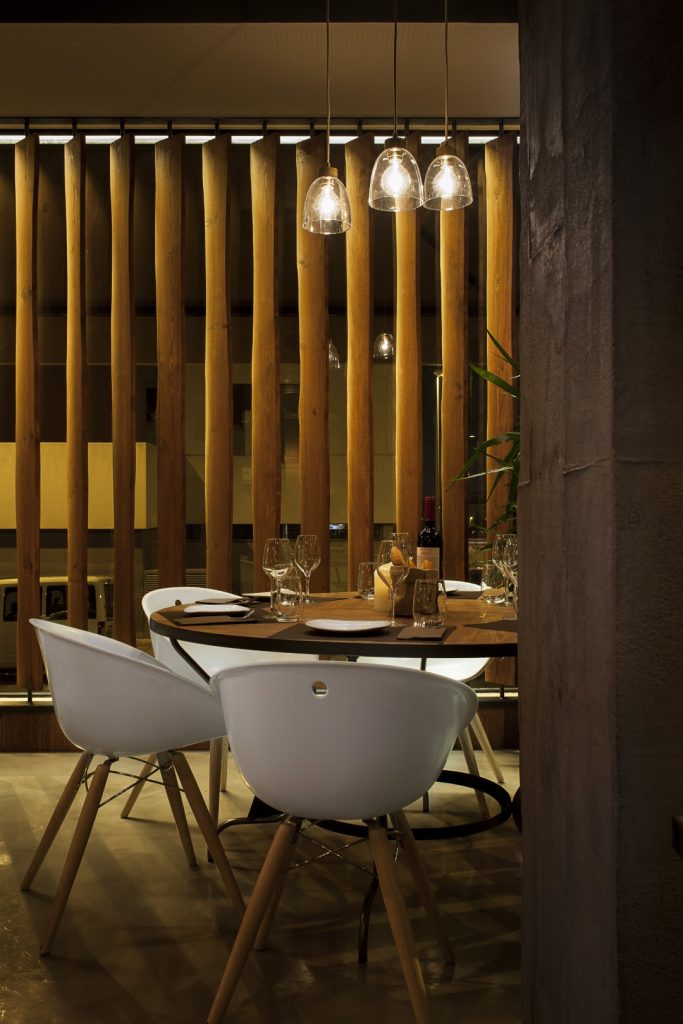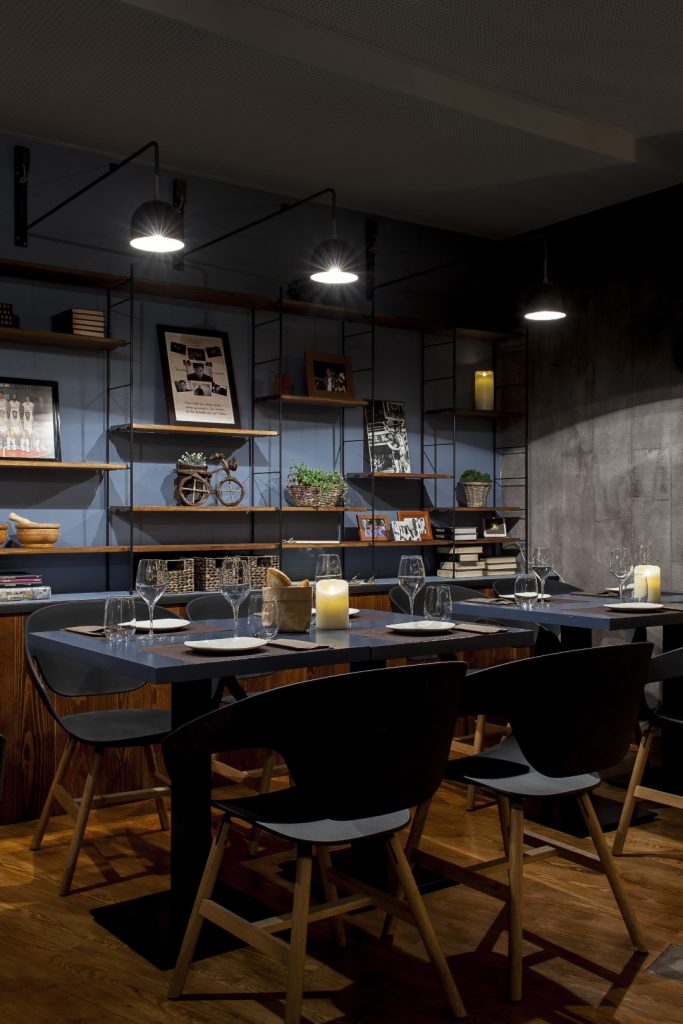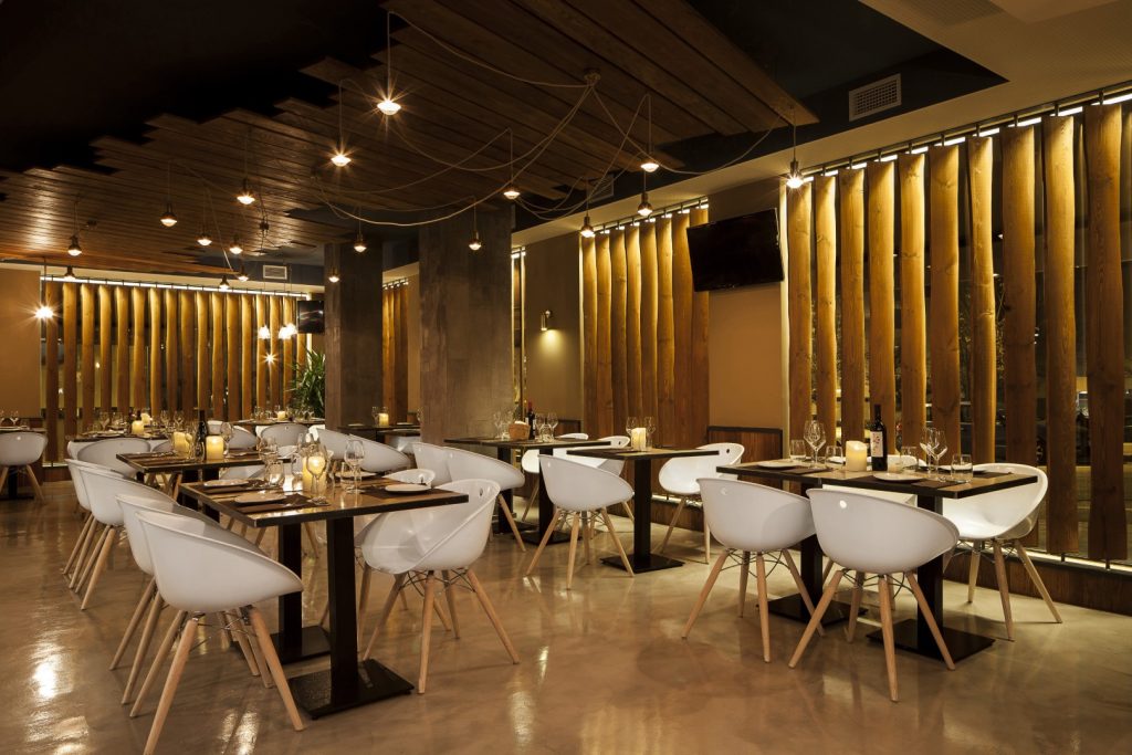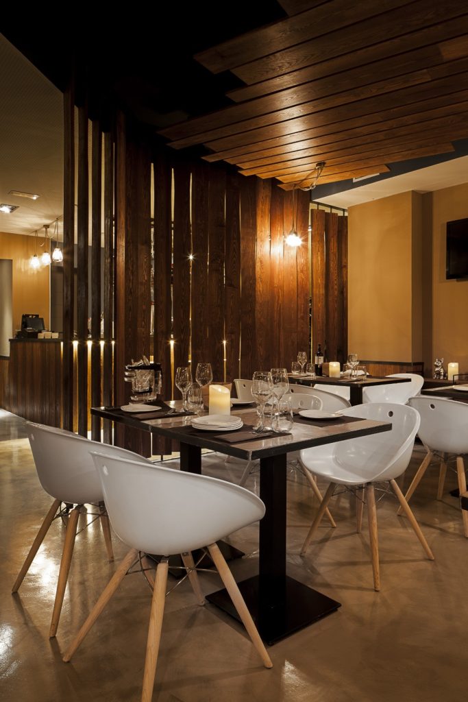 El restaurante tenía dos públicos: comidas de trabajo entre semana y más distendidas con niños el fin de semana. Diseñamos zonas distintas, con separadores verticales de madera, por un lado nos permitía articular la circulación, por otro nos permitían controlar el ruido y también cerraba visualmente las zonas, para que no fuera el típico comedor para 100 comensales tipo franquicia a lo bruto.